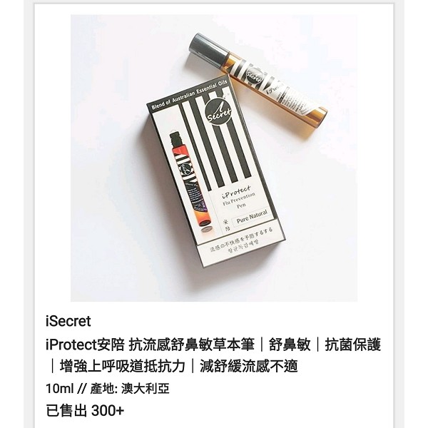 萃取iSecret 100%澳洲精油 : 桉樹、馬鬱蘭、松樹、薰衣草、胡椒薄荷、絲柏、維他命E、荷荷芭油及甜杏仁油 |